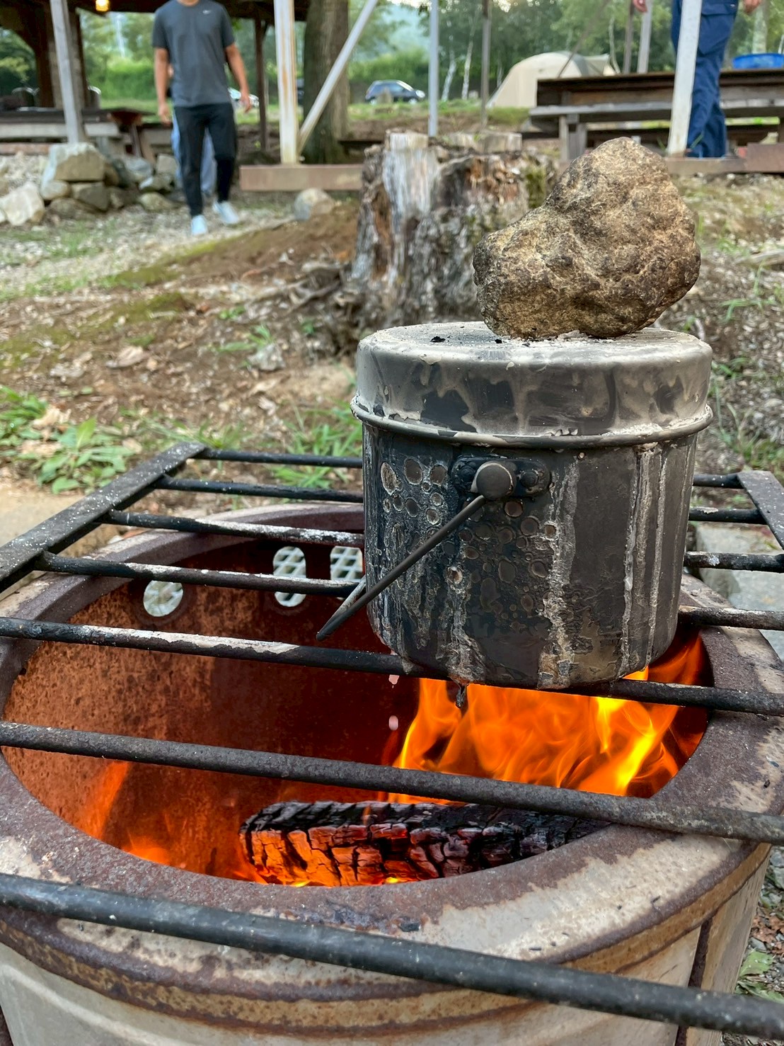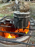 夕食はかまどで薪を燃やして、飯盒でご飯を炊きます。メニューは定番のカレー!です。